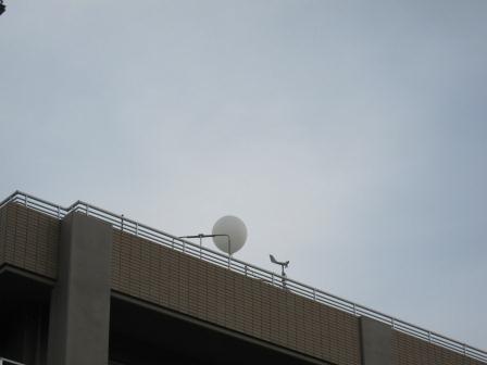 福岡管区気象台では,毎朝8時半に上空の大気を観測するラジオゾンデの放球を行っているので,これを見に行きました.気象台の屋上から大きなバルーンが静かに上がっていきました.自分たちもよくラジオゾンデを使用しますが,船上や都会から離れた場所での放球が多いので,町中での放球風景は貴重でした.