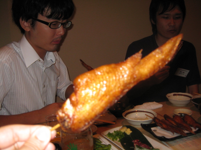 あと、若手会で出た手羽先が名古屋や東海圏でよく見る手羽先と違いでっかくて串に刺さっているのが印象的でした!