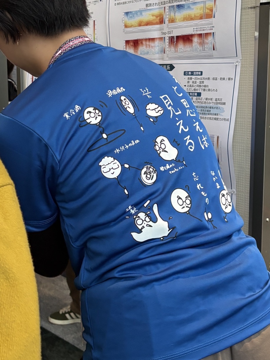 余談①:ポスター発表は、研究室で作ったTシャツを着て行いました。