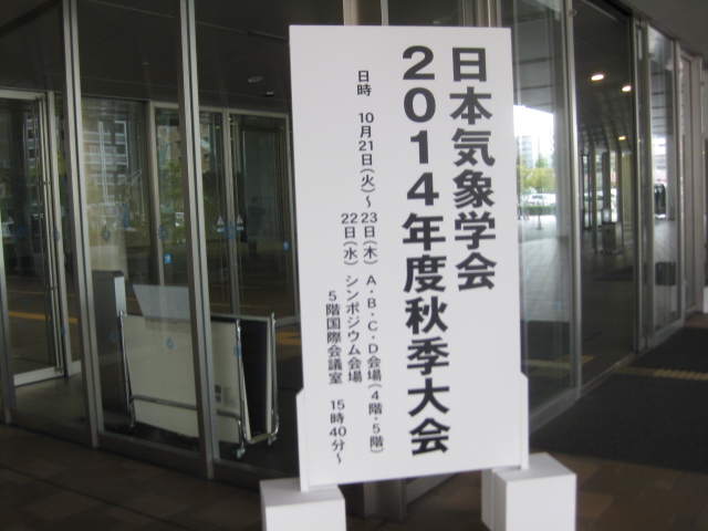 あと、すでに何人かブログで書かれておりますが「室内実験での気象学」も大変興味深いセッションでした。内容もさることながら、なんとなく発表者の雰囲気が…工学系の雰囲気を感じて…何か違う…感じで…。いつもと違う学会の空気を味わった気がします!