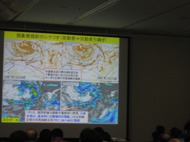 「スペシャルセッションの日本の豪雨・豪雪と黒潮」で発表されていた山下寛さんの「2013年7月3日の福岡県の大雨」のお話が面白かったです!総観規模場でにた前線の位置に変化はいないのに降水帯の南下がみられ、福岡に豪雨をもたらした原因を観測データを用いて紹介してくださっておりました。南西風と西風のシアーが原因、、、かも、、、ちょっとメモしきれていないので仔細は忘れてしまいました。。。精進します。。。