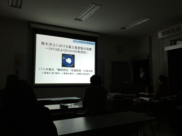 他にも、同じく東海大の八木さんの発表で「南大洋上における海上風変動の指標-DPOIおよびKDOTの有効性-」も気になりました!