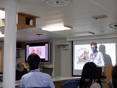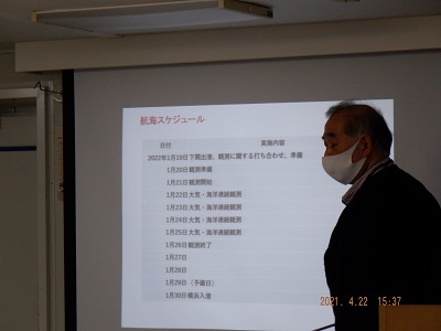 実際の観測計画について船員さんも交えて議論が行われました。耕洋丸がどんな航路をたどって観測を行うのか、実際に可能であるかどうかなど…それぞれの道の専門家たちが意見を出し合って話し合いを進めている様子はとてもかっこよかったです。