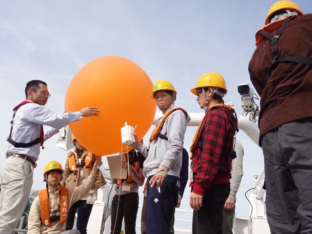 伊良湖水道を抜けたところでラジオゾンデとXBTのデモンストレーション的観測を行いました。