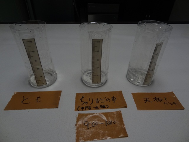 手作り雨量計も3つ設置したのですが(トモとオモテと中階の甲板の3箇所)、