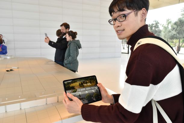 アップル本社横のアップルストアにて,ARで建物の様子を紹介しています.