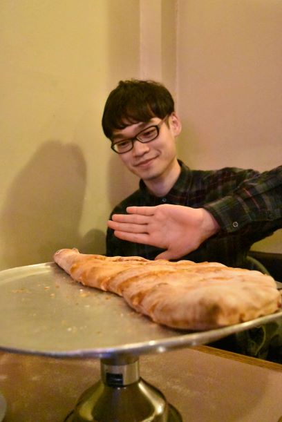飯レビューその6:半分に折って蓋がしてあるピザは初めて食べました.とてもおいしいかった..