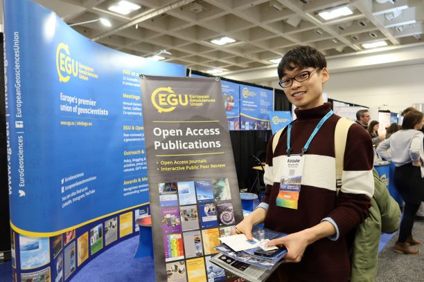 学会の開催期間中に何度か訪れてEGUのUSBメモリ,NASAのカレンダーとトートバッグを無事に手に入れることができました.