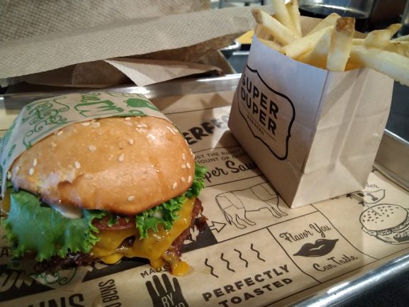飯レビューその4:機械が作ってくれるというハンバーガー屋さん.普通においしかったのですが,人員削減にはなってなさそうでした.