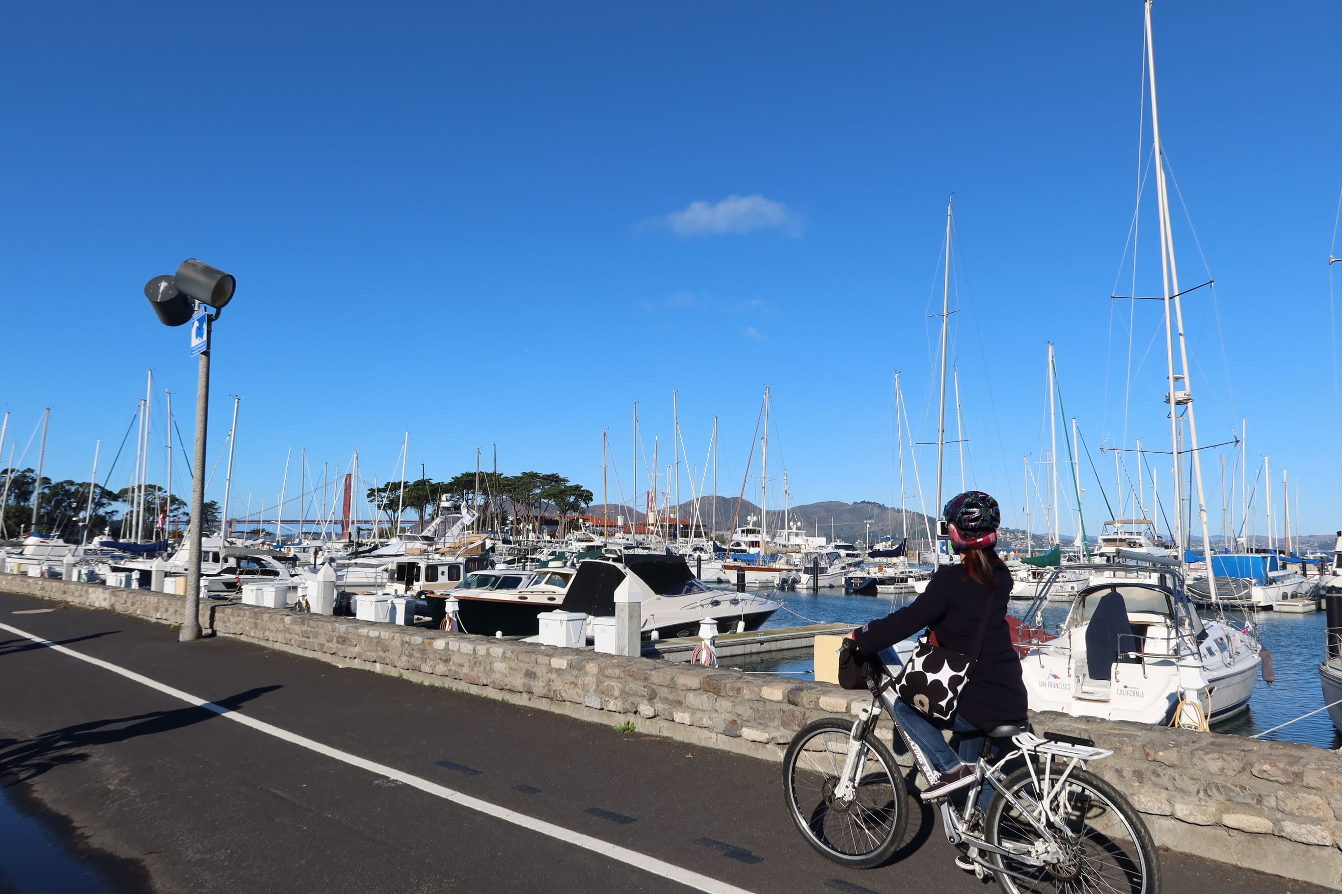 ゴールデンゲートブリッジを渡ってからはちょっと頑張って漕いで,サウサリートという街まで行きました.