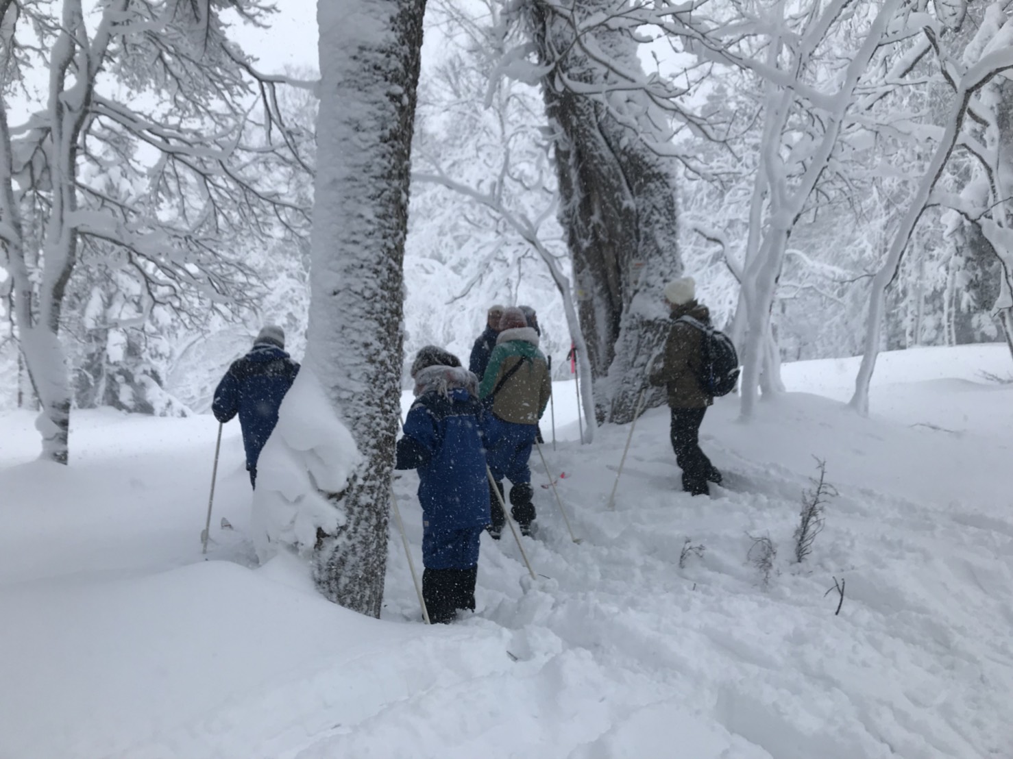 慣れないスキー板にこけたり、斜面を登れなかったりと苦戦しました。しかし、帰るときには少し慣れてとても楽しかったです。また、ウサギの足跡を見つけられたり、きれいな景色がみられたり、北海道の雪山を大いに満喫しました。