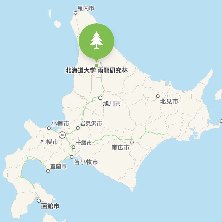 朝4時に津を出発。車→飛行機→JR→JR→レンタカーと乗り継ぎ、宿泊先である北海道大学雨龍研究林に辿り着いたのはなんと14時間後の18時でした。疲労困憊。