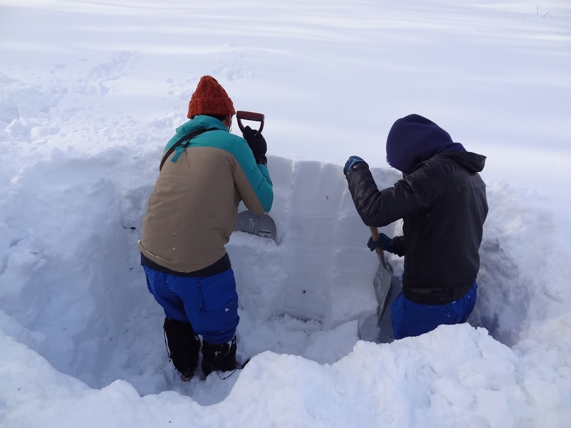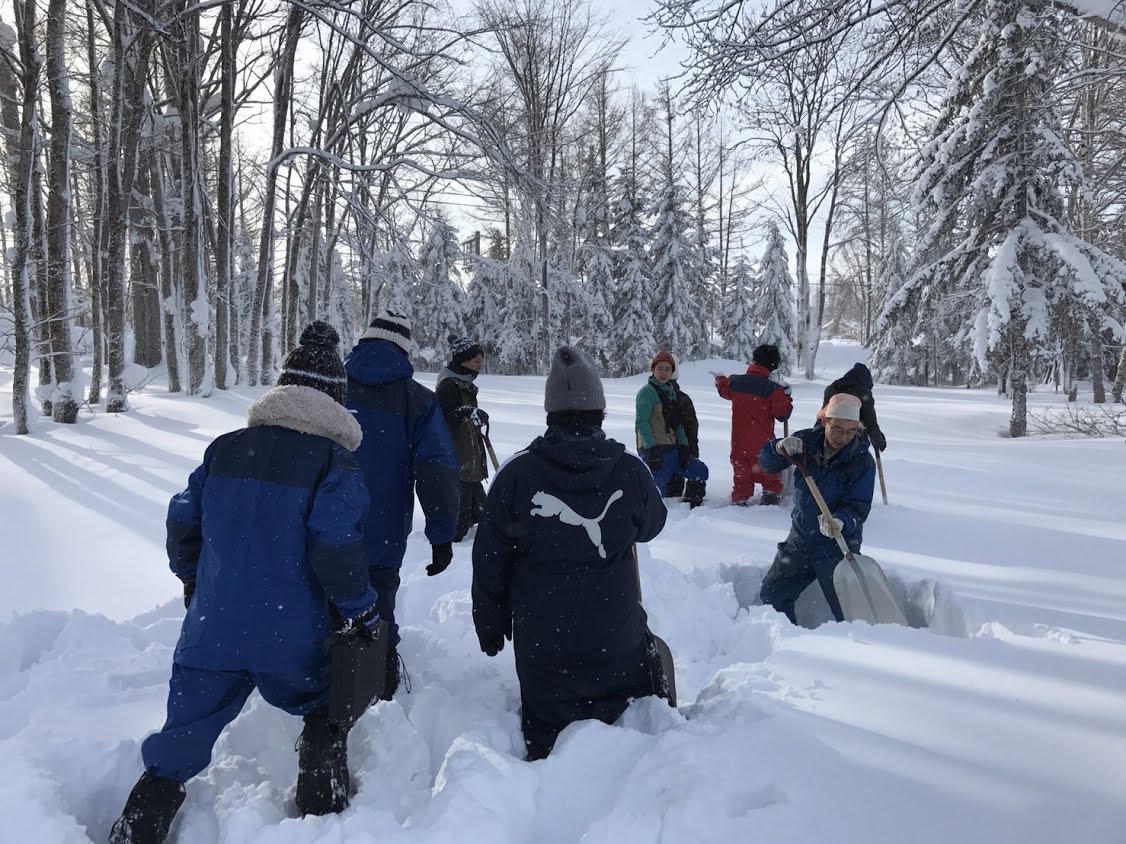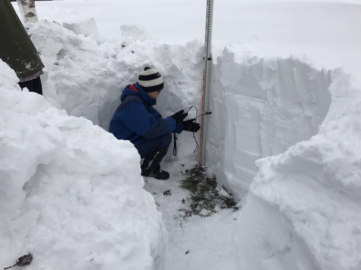 地面が見えるまでひたすら雪を掘り、ものさしを立てると積雪深は126cm。10㎝ごとに温度や単位体積あたりの質量も測り、下の方が温度や密度が高いことも確認しました。観測の合間には滑り台やかまくらも作ってはしゃいでいました(笑)